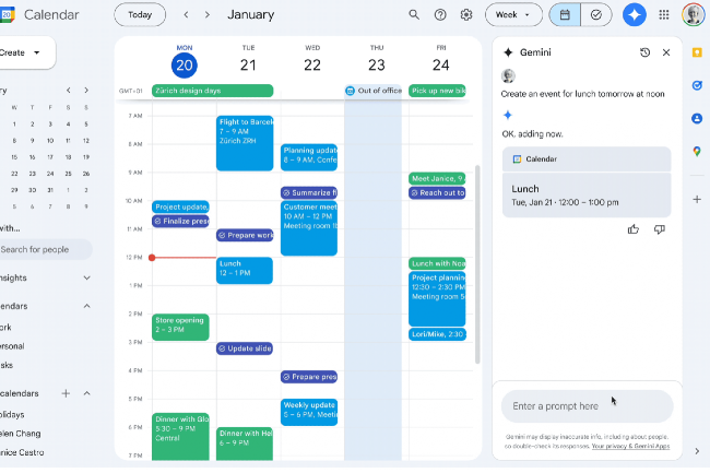 Fonctionnalités de Gemini dans Calendar